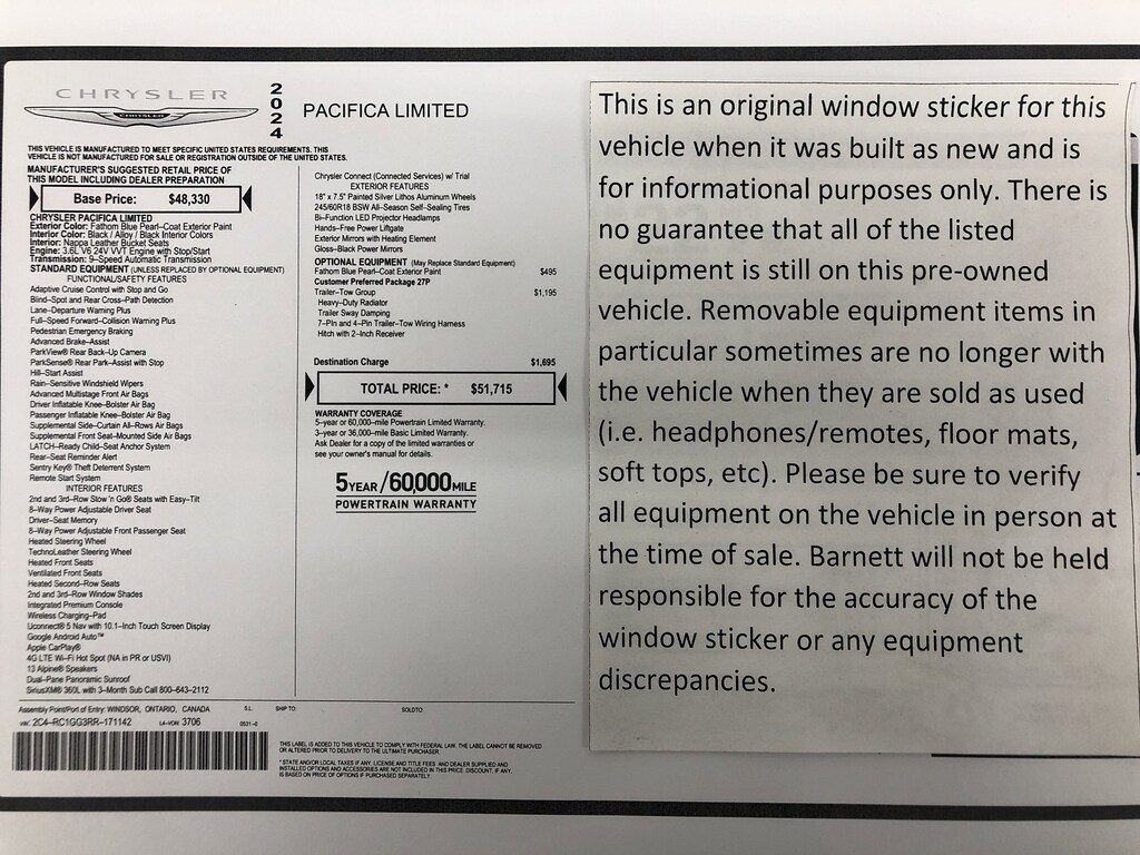 "The vehicle equipment list is auto generated and errors in listed equipment may occur. Please be sure to verify all equipment on the vehicle in person at time of sale as this list may not be 100% accurate. Barnett will not be held responsible for the accuracy of this list."Listed selling price includes a $1000 Barnett Trade Bonus. Trade-in vehicles no more than 10 years old and 100K miles or less with a clean title automatically qualify. Trade-in vehicles outside these parameters need to be discussed and reviewed in person with the dealership to determine qualification.
