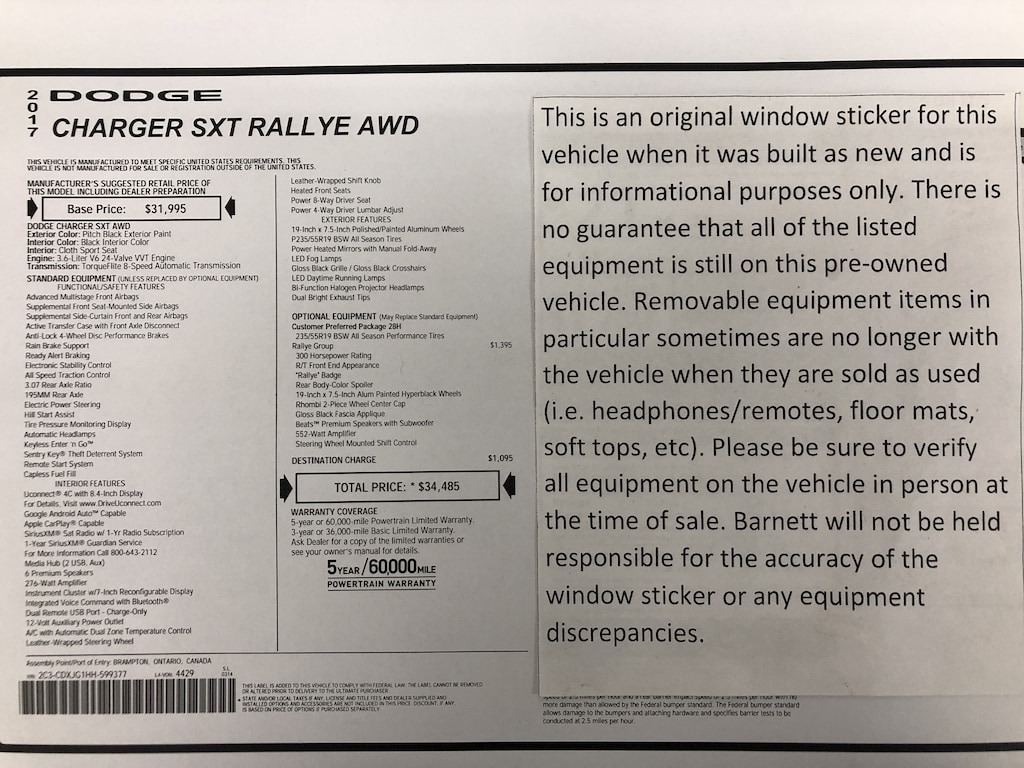 Listed selling price includes a $1000 Barnett Trade Bonus. Trade-in vehicles no more than 10 years old and 100K miles or less with a clean title automatically qualify. Trade-in vehicles outside these parameters need to be discussed and reviewed in person with the dealership to determine qualification. "The vehicle equipment list is auto generated and errors in listed equipment may occur. Please be sure to verify all equipment on the vehicle in person at time of sale as this list may not be 100% accurate. Barnett will not be held responsible for the accuracy of this list."