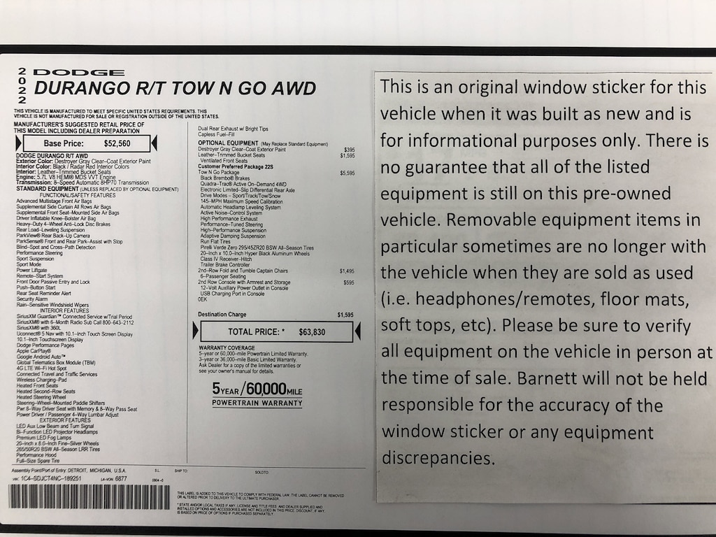 Listed selling price includes a $1000 Barnett Trade Bonus. Trade-in vehicles no more than 10 years old and 100K miles or less with a clean title automatically qualify. Trade-in vehicles outside these parameters need to be discussed and reviewed in person with the dealership to determine qualification. "The vehicle equipment list is auto generated and errors in listed equipment may occur. Please be sure to verify all equipment on the vehicle in person at time of sale as this list may not be 100% accurate. Barnett will not be held responsible for the accuracy of this list."