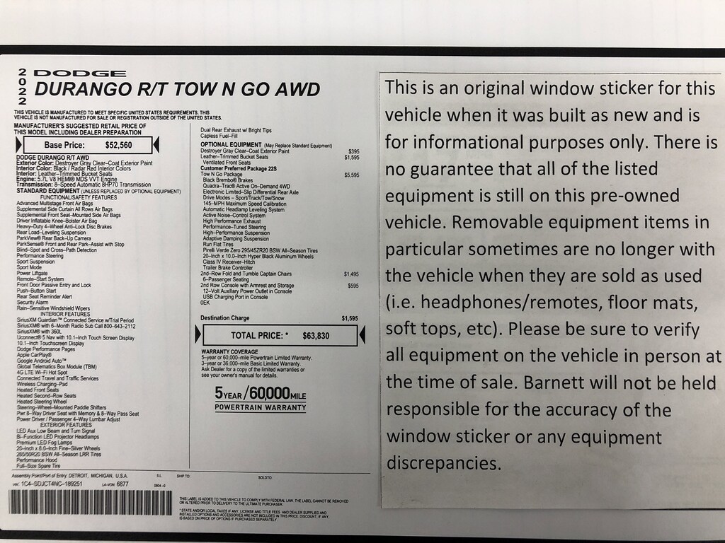 Listed selling price includes a $1000 Barnett Trade Bonus. Trade-in vehicles no more than 10 years old and 100K miles or less with a clean title automatically qualify. Trade-in vehicles outside these parameters need to be discussed and reviewed in person with the dealership to determine qualification. "The vehicle equipment list is auto generated and errors in listed equipment may occur. Please be sure to verify all equipment on the vehicle in person at time of sale as this list may not be 100% accurate. Barnett will not be held responsible for the accuracy of this list."