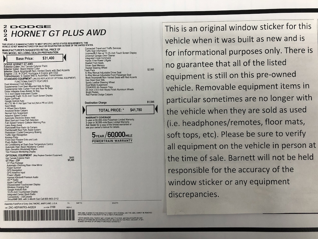 Listed selling price includes a $1000 Barnett Trade Bonus. Trade-in vehicles no more than 10 years old and 100K miles or less with a clean title automatically qualify. Trade-in vehicles outside these parameters need to be discussed and reviewed in person with the dealership to determine qualification. "The vehicle equipment list is auto generated and errors in listed equipment may occur. Please be sure to verify all equipment on the vehicle in person at time of sale as this list may not be 100% accurate. Barnett will not be held responsible for the accuracy of this list."