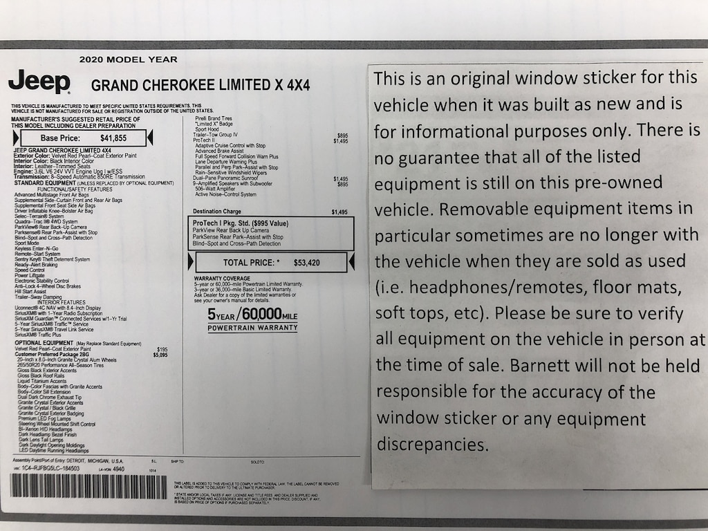 Used 2020 JeepGrand Cherokee Limited X 4WD