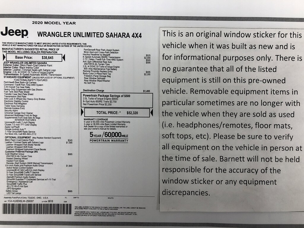Used 2020 JeepWrangler Sahara 4WD