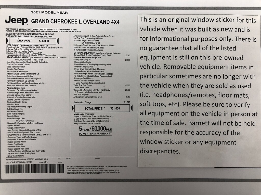 Used 2021 JeepGrand Cherokee L Overland 4WD