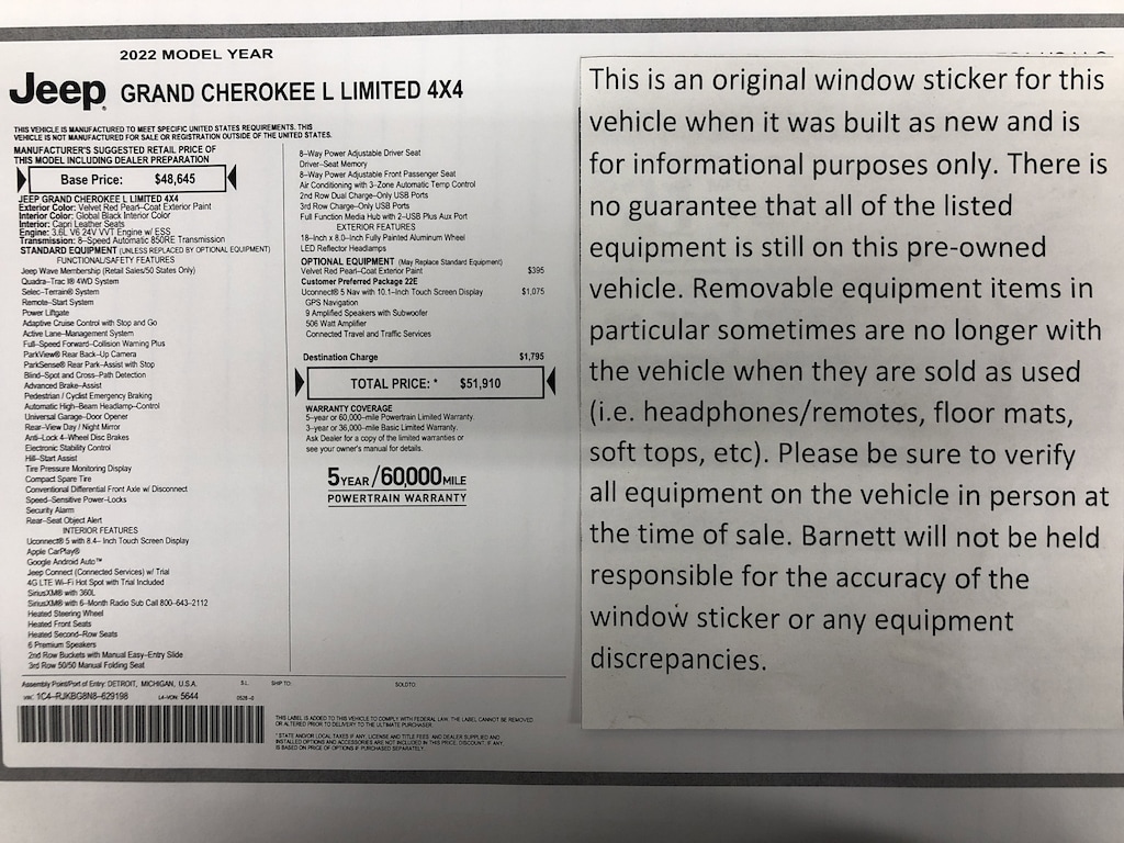 Used 2022 JeepNew Grand Cherokee Limited 4WD