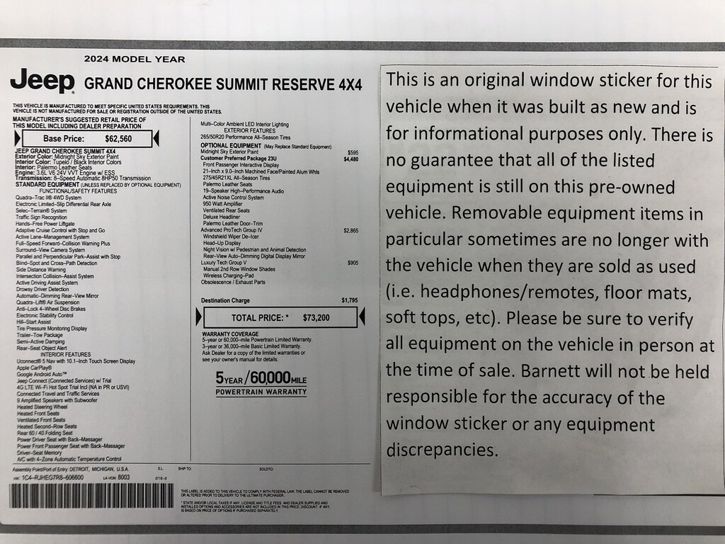 Certified Pre Owned 2024 JeepGrand Cherokee Summit Reserve 4WD