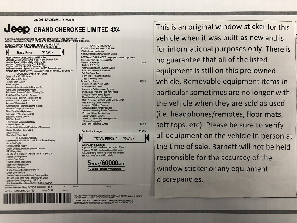 Certified Pre Owned 2024 JeepGrand Cherokee Limited 4WD